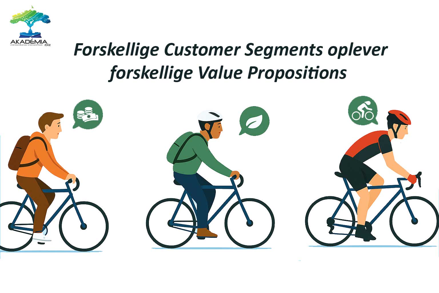 Osterwalder og Pigneurs oprindelige pointe bliver dermed meget konkret. Man kan ikke tale meningsfuldt om værdi uden først at vide, hvem den er tiltænkt. Vi kan godt beskrive “en god cykel” i generelle vendinger, men i forretningsmæssig forstand bliver det først interessant, når vi ved, om vi taler til den pressede studerende, den klimaengagerede pendler eller den målrettede atlet.